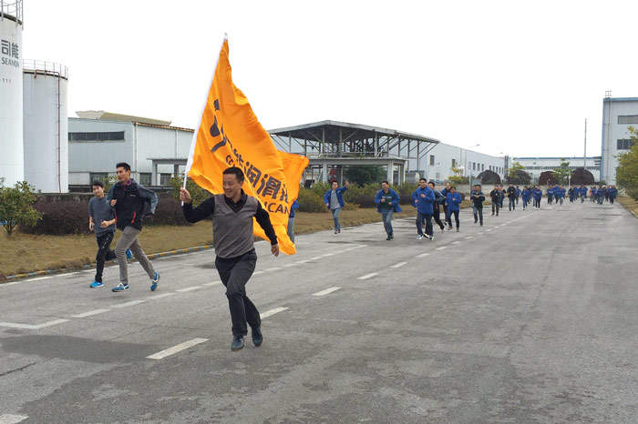 ? ? ? ?下午15:30,公司領(lǐng)導(dǎo)帶頭在橫幅上簽名,參加活動的員工紛紛簽名并寫下祝語,有祝公司業(yè)績蒸蒸日上,也有希望個人工資翻倍、身體倍棒、吃嘛嘛香等不同的寄語。隨后進行的迎新跑步活動將氣氛推向高潮。員工們意氣風發(fā),迎著新希望邁步向前沖,個個以勝利手勢沖向終點。