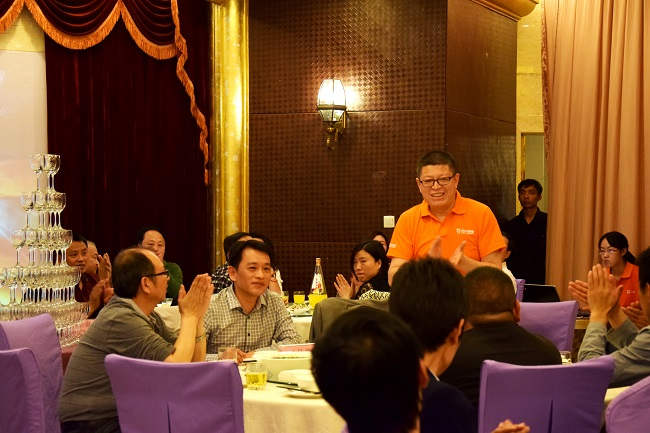 展會外場篇之司能晚宴,舉辦于展會首日晚餐時分,百余人到場?!八灸芎匣锶恕毙抡?,公司高管高調(diào)祝酒,席間觥籌交錯,溫馨昂揚。司能的新伙伴,老朋友,均爭相發(fā)言。