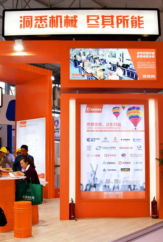 司能延續(xù)“一帶一路”理念,以穿插的展臺結(jié)構(gòu),重工的機(jī)械風(fēng)格,帶你重走不一樣的絲綢之路。以司能橘及暖灰為主打色調(diào),簡潔的集裝箱元素布局全場,前廳,大幅燈箱畫面展現(xiàn)公司實力。后場,各子品牌產(chǎn)品以實物及畫面的形式共同展示。