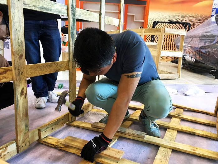 4.16,搭建開始。成都的工人和和氣氣,慢悠悠,負(fù)責(zé)搭建的小伙伴,一點(diǎn)也不敢放松監(jiān)督。