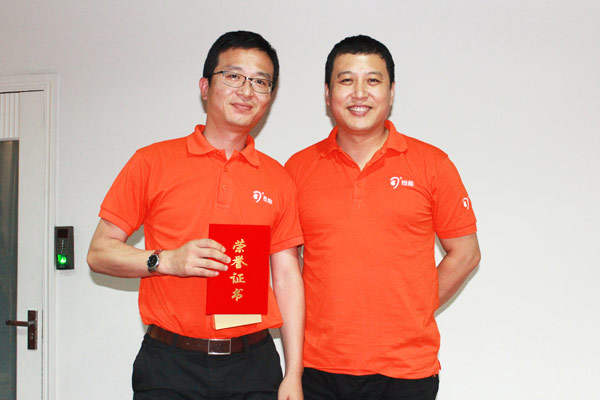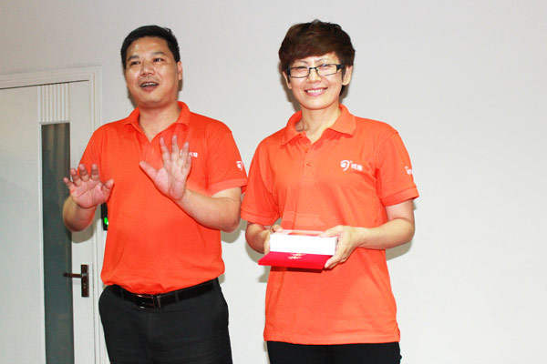 △總經(jīng)理助理李紹英為大客戶經(jīng)理張劍鋒頒發(fā)最佳進步獎。