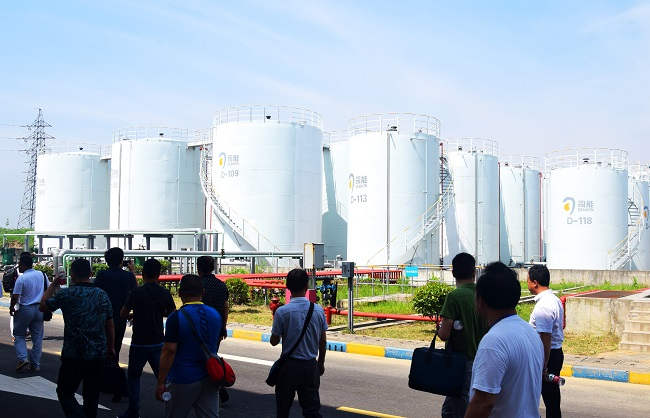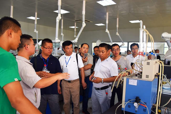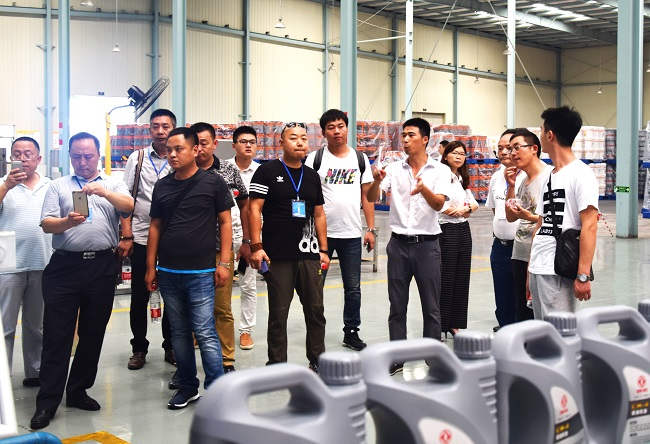 通過司能雄厚實力的分享與演說,大家對司能充滿了無限好奇。19日早晨近180余人報名參觀溧陽工廠。當天溧陽氣溫較高,但嘉賓們熱情向往不畏高溫頂著烈日來到工廠參觀考察、洽談交流。參觀嘉賓分成3個小組,依次參觀了研發(fā)中心、油樣儲存室、灌裝線、儲油區(qū),現(xiàn)代化自動設施,參觀嘉賓紛紛掏出手機拍照留影,嘉賓被工廠先進的自動化生產(chǎn)線所吸引,充分展現(xiàn)了司能的雄厚實力和先進技術水平。