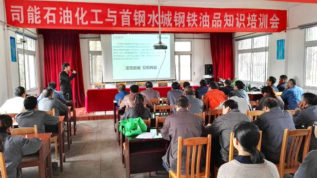 ? ? ? ? 本次培訓(xùn)在收到首鋼水城鋼鐵的邀請之后,銷售人員馬上和技術(shù)人員進(jìn)行溝通,按照客戶所處的鋼鐵行業(yè)的特殊工況結(jié)合潤滑油的使用,有針對性的準(zhǔn)備油品方面的相關(guān)培訓(xùn)材料及應(yīng)用案例??蛻粢卜浅V匾暣舜闻嘤?xùn),來參加培訓(xùn)的部門有煉鐵廠、煉鋼廠、軋鋼廠、能源公司、煤焦化公司、鐵運廠、自動化分公司、維檢中心以及水鋼機動部(采購部)等相關(guān)部門。在培訓(xùn)的過程中,技術(shù)人員不時的提出一些油品日常的使用問題與現(xiàn)場人員進(jìn)行交流,增加了培訓(xùn)的參與感和互動性。?